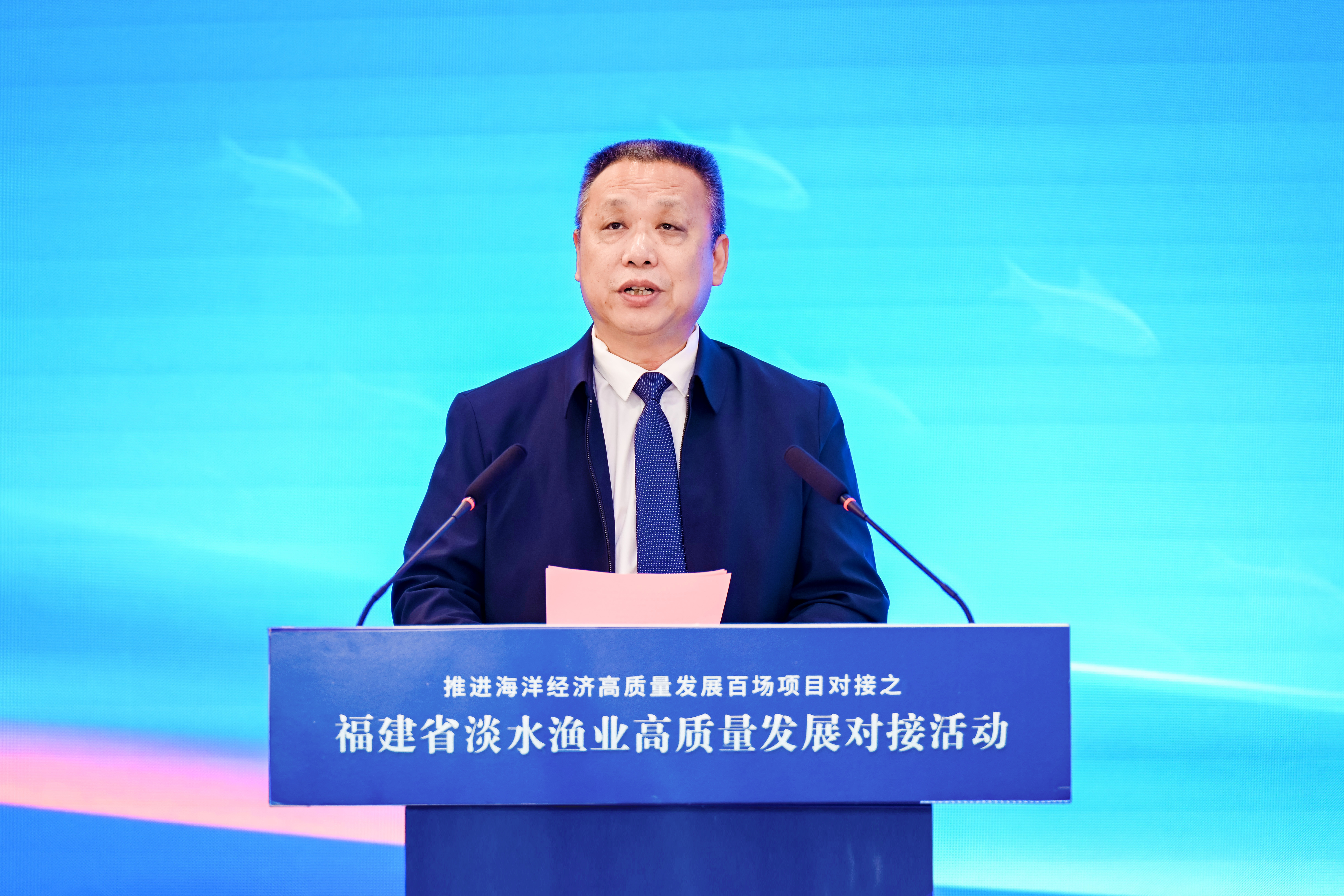 11月22日,由福建省海洋与渔业局主办的推进海洋经济高质量发展百场项目对接之福建省淡水渔业高质量发展对接活动在福州顺利举行。福建省海洋与渔业局党组书记、局长颜志煌,中国科学院水生生物研究所党委书记、研究员解绶启参加活动并致辞。中国工程院院士、中国海洋大学教授麦康森参加活动并作主旨报告。福建省海洋与渔业局党组成员、副局长刘庆丰主持致辞环节。
